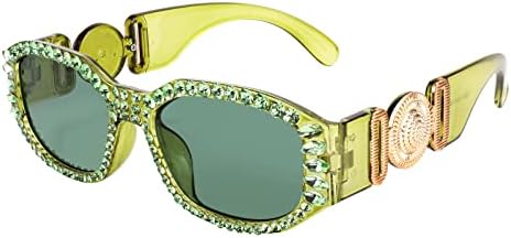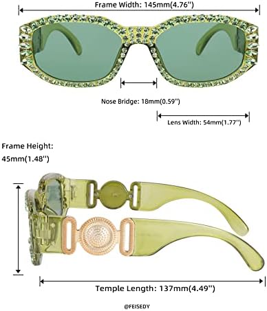 FEISEDY Chunky Rectangle 90s Sunglasses Men Women Crystal Sunglasses UV400 Sparkling Fahion Temple B2880