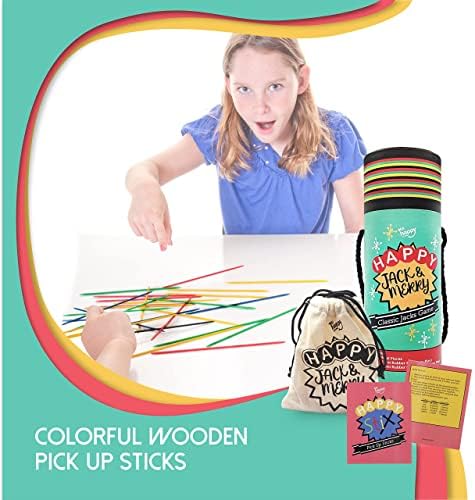 GREAT PRESENT FOR ALL OCCASIONS. This classic set of Jackstones and pickup sticks original comes in a travel-friendly vintage container, which includes a pouch, dice, and instruction card-the perfect retro board games for families and friends!