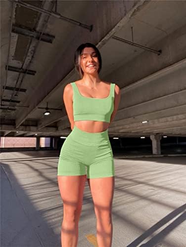 Gym Running Ribbed Leisure Women Tank Crop Top Shorts 2 Piece Outfits