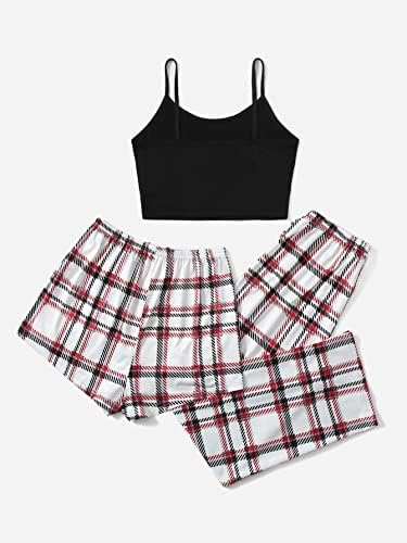 SheIn Women's 3 Piece Plaid Pajamas Set Cami Shorts Set with Pants
